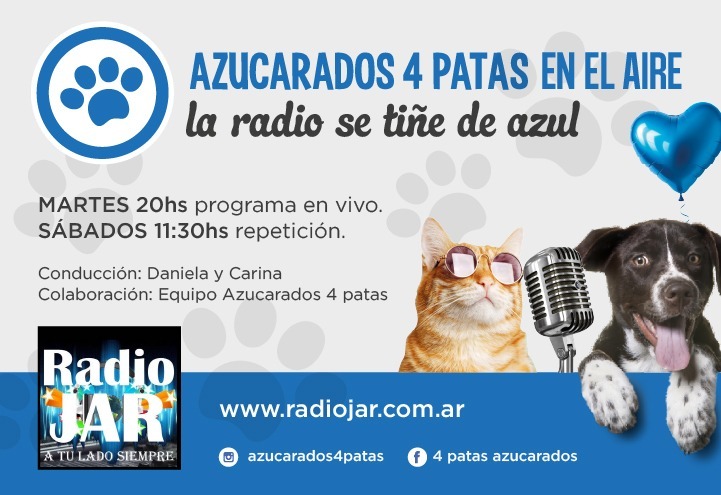 Un programa dedicado a nuestros 4 patas con diabetes. Editoriales, entrevistas, relatos azucarados, invitados, profesionales y amigos unidos en una misma frecuencia. La radio se tiñe de azul, el color de la diabetes.